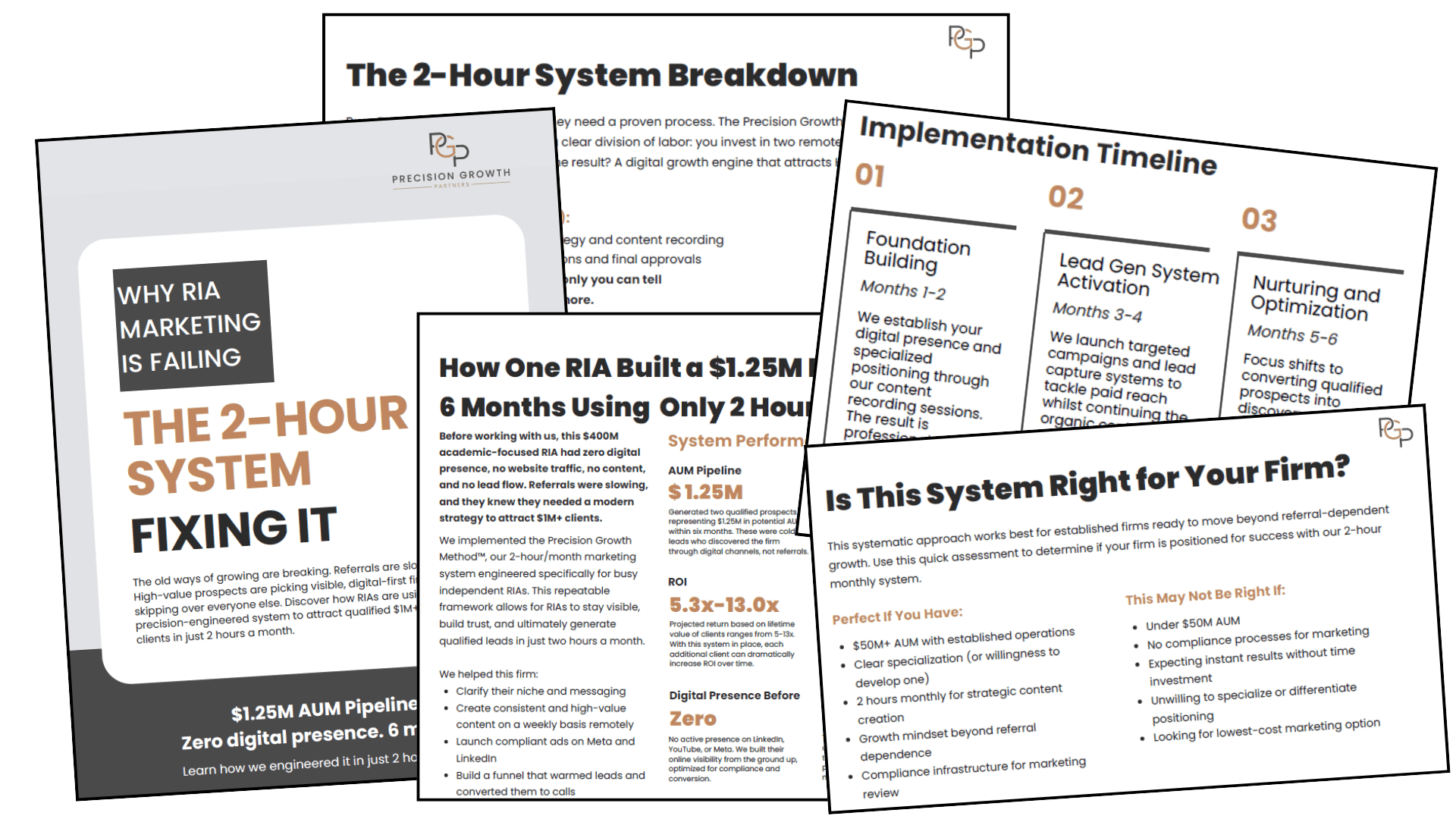 The Precision Growth Method™ allows RIAs to achieve real growth without the marketing burden. If you're short on time but serious about significant returns, this system is your solution.